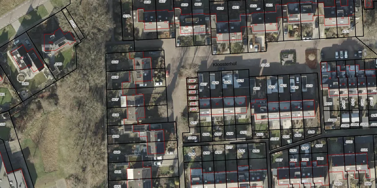 Het perceel waarop Kloosterhof 26-D staat heeft een oppervlakte van 18 m². Dit is een klein perceel. De perceeloppervlakte wordt geregistreerd door het Kadaster. Gedetailleerde informatie over de maten van dit perceel kunt u vinden in het rapport Kadastrale kaart met maatvoering van Kloosterhof 26-D.