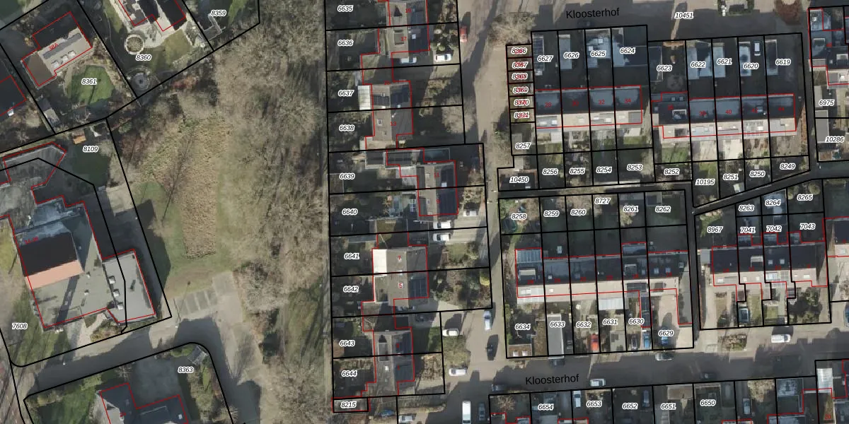 Het perceel waarop Kloosterhof 9 staat heeft een oppervlakte van 358 m². Dit is een groot perceel. De perceeloppervlakte wordt geregistreerd door het Kadaster. Gedetailleerde informatie over de maten van dit perceel kunt u vinden in het rapport Kadastrale kaart met maatvoering van Kloosterhof 9.