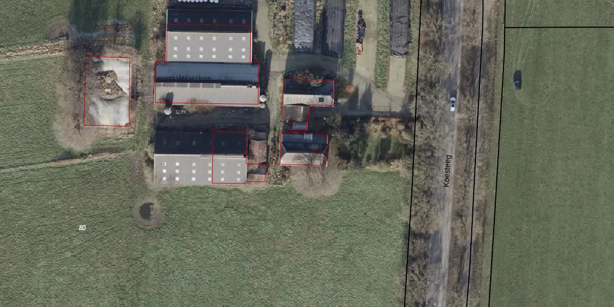 Het perceel waarop Koesteeg 19 staat heeft een oppervlakte van 3,7 ha. Dit is een zeer groot perceel. De perceeloppervlakte wordt geregistreerd door het Kadaster. Gedetailleerde informatie over de maten van dit perceel kunt u vinden in het rapport Kadastrale kaart met maatvoering van Koesteeg 19.