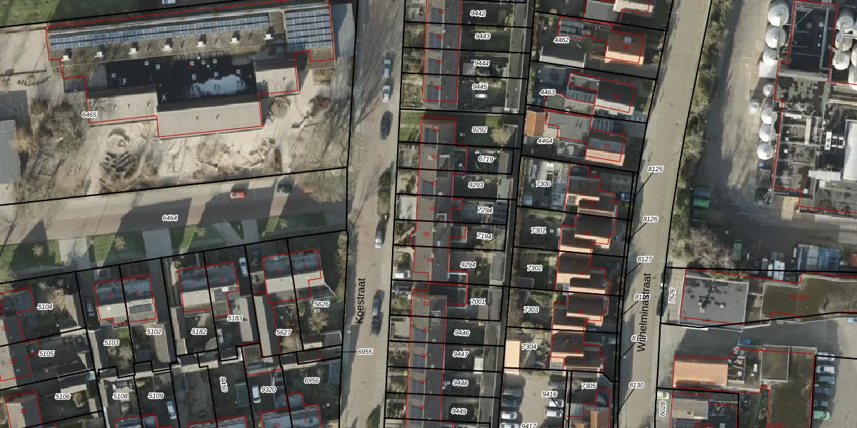 Het perceel waarop Koestraat 38 staat heeft een oppervlakte van 159 m². Dit is een middelgroot perceel. De perceeloppervlakte wordt geregistreerd door het Kadaster. Gedetailleerde informatie over de maten van dit perceel kunt u vinden in het rapport Kadastrale kaart met maatvoering van Koestraat 38.