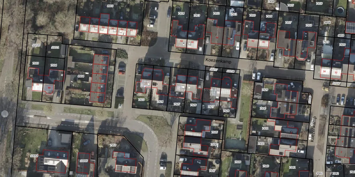 Het perceel waarop Koezenkamp 15 staat heeft een oppervlakte van 242 m². Dit is een middelgroot perceel. De perceeloppervlakte wordt geregistreerd door het Kadaster. Gedetailleerde informatie over de maten van dit perceel kunt u vinden in het rapport Kadastrale kaart met maatvoering van Koezenkamp 15.