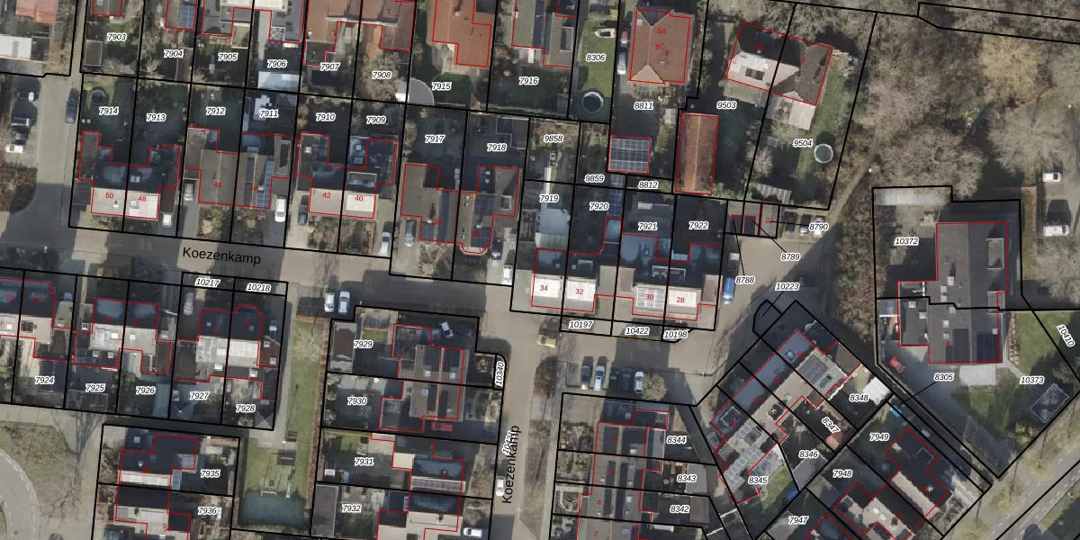 Het perceel waarop Koezenkamp 34 staat heeft een oppervlakte van 232 m². Dit is een middelgroot perceel. De perceeloppervlakte wordt geregistreerd door het Kadaster. Gedetailleerde informatie over de maten van dit perceel kunt u vinden in het rapport Kadastrale kaart met maatvoering van Koezenkamp 34.