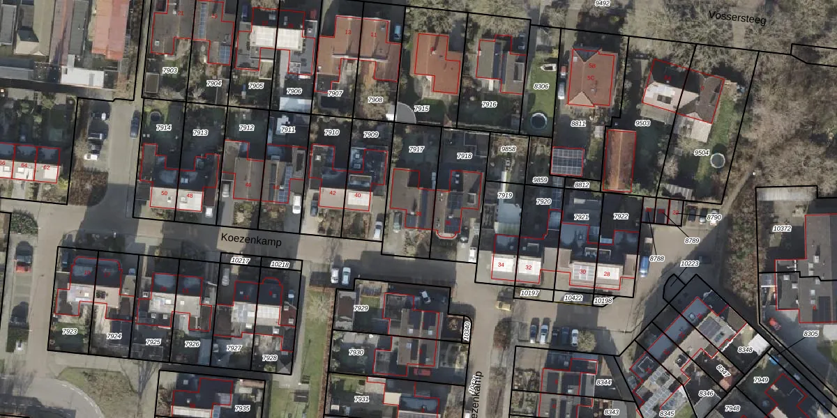 Het perceel waarop Koezenkamp 38 staat heeft een oppervlakte van 364 m². Dit is een groot perceel. De perceeloppervlakte wordt geregistreerd door het Kadaster. Gedetailleerde informatie over de maten van dit perceel kunt u vinden in het rapport Kadastrale kaart met maatvoering van Koezenkamp 38.