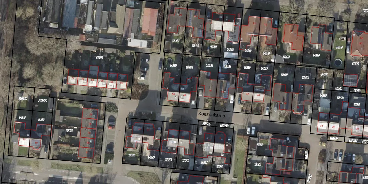 Het perceel waarop Koezenkamp 48 staat heeft een oppervlakte van 287 m². Dit is een middelgroot perceel. De perceeloppervlakte wordt geregistreerd door het Kadaster. Gedetailleerde informatie over de maten van dit perceel kunt u vinden in het rapport Kadastrale kaart met maatvoering van Koezenkamp 48.