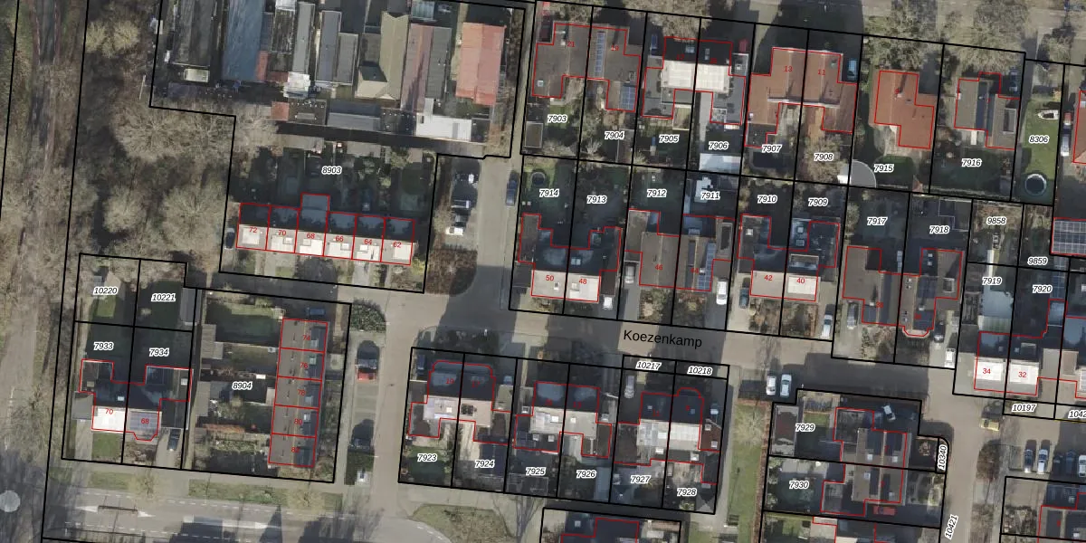 Het perceel waarop Koezenkamp 50 staat heeft een oppervlakte van 288 m². Dit is een middelgroot perceel. De perceeloppervlakte wordt geregistreerd door het Kadaster. Gedetailleerde informatie over de maten van dit perceel kunt u vinden in het rapport Kadastrale kaart met maatvoering van Koezenkamp 50.