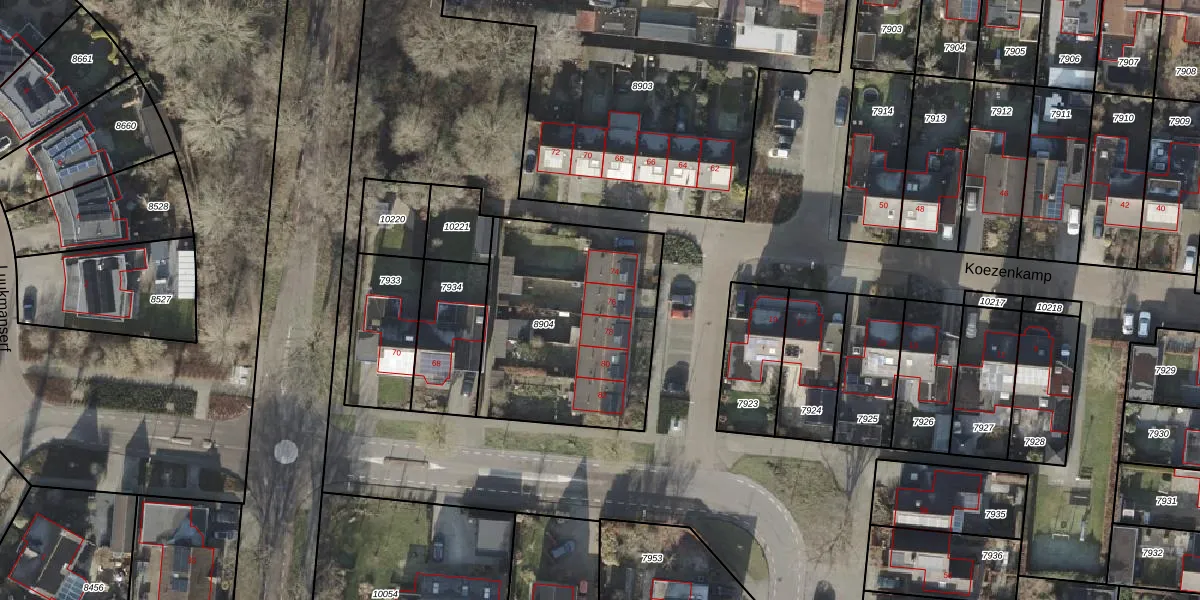 Het perceel waarop Koezenkamp 76 staat heeft een oppervlakte van 930 m². Dit is een groot perceel. De perceeloppervlakte wordt geregistreerd door het Kadaster. Gedetailleerde informatie over de maten van dit perceel kunt u vinden in het rapport Kadastrale kaart met maatvoering van Koezenkamp 76.