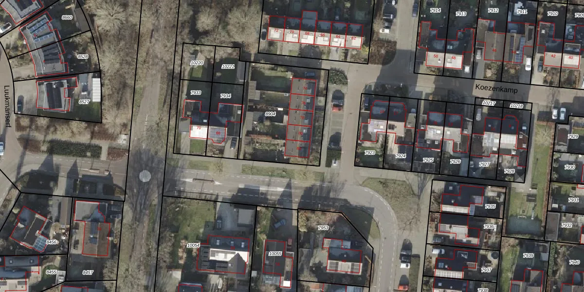 Het perceel waarop Koezenkamp 82 staat heeft een oppervlakte van 930 m². Dit is een groot perceel. De perceeloppervlakte wordt geregistreerd door het Kadaster. Gedetailleerde informatie over de maten van dit perceel kunt u vinden in het rapport Kadastrale kaart met maatvoering van Koezenkamp 82.