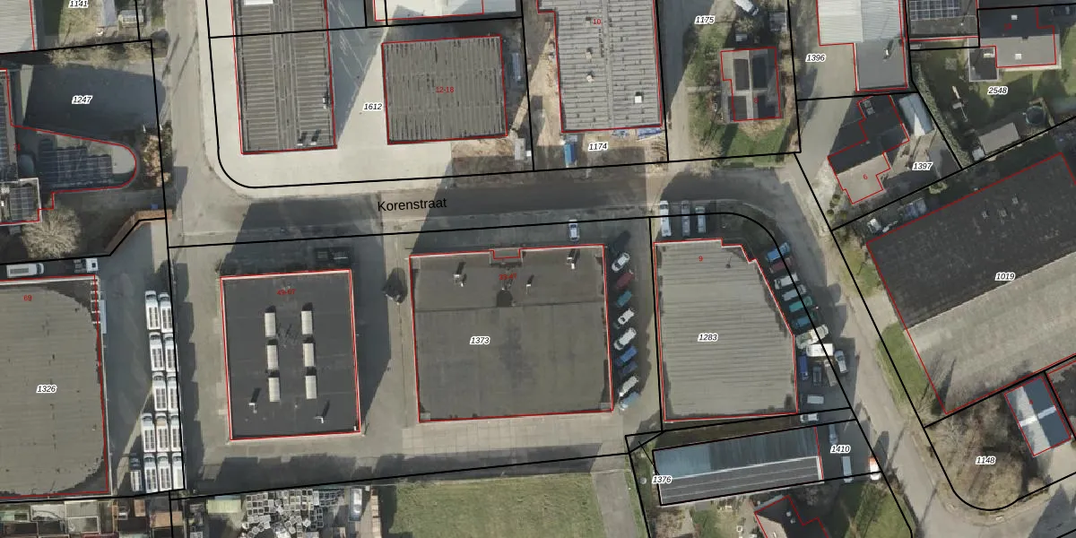 Het perceel waarop Korenstraat 35 staat heeft een oppervlakte van 4006 m². Dit is een zeer groot perceel. De perceeloppervlakte wordt geregistreerd door het Kadaster. Gedetailleerde informatie over de maten van dit perceel kunt u vinden in het rapport Kadastrale kaart met maatvoering van Korenstraat 35.