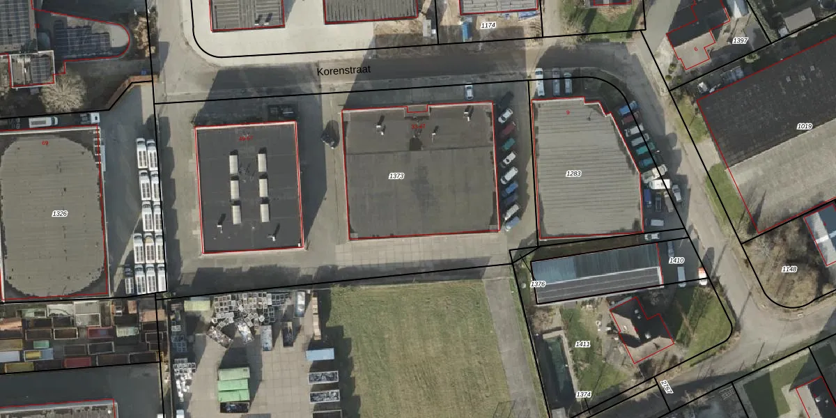Het perceel waarop Korenstraat 47 staat heeft een oppervlakte van 4006 m². Dit is een zeer groot perceel. De perceeloppervlakte wordt geregistreerd door het Kadaster. Gedetailleerde informatie over de maten van dit perceel kunt u vinden in het rapport Kadastrale kaart met maatvoering van Korenstraat 47.