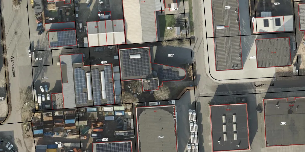 Het perceel waarop Korenstraat 71 staat heeft een oppervlakte van 1790 m². Dit is een zeer groot perceel. De perceeloppervlakte wordt geregistreerd door het Kadaster. Gedetailleerde informatie over de maten van dit perceel kunt u vinden in het rapport Kadastrale kaart met maatvoering van Korenstraat 71.