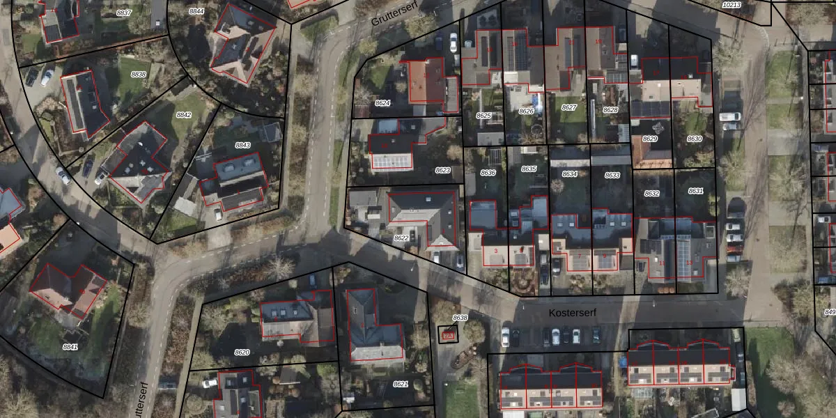 Het perceel waarop Kosterserf 1 staat heeft een oppervlakte van 456 m². Dit is een groot perceel. De perceeloppervlakte wordt geregistreerd door het Kadaster. Gedetailleerde informatie over de maten van dit perceel kunt u vinden in het rapport Kadastrale kaart met maatvoering van Kosterserf 1.