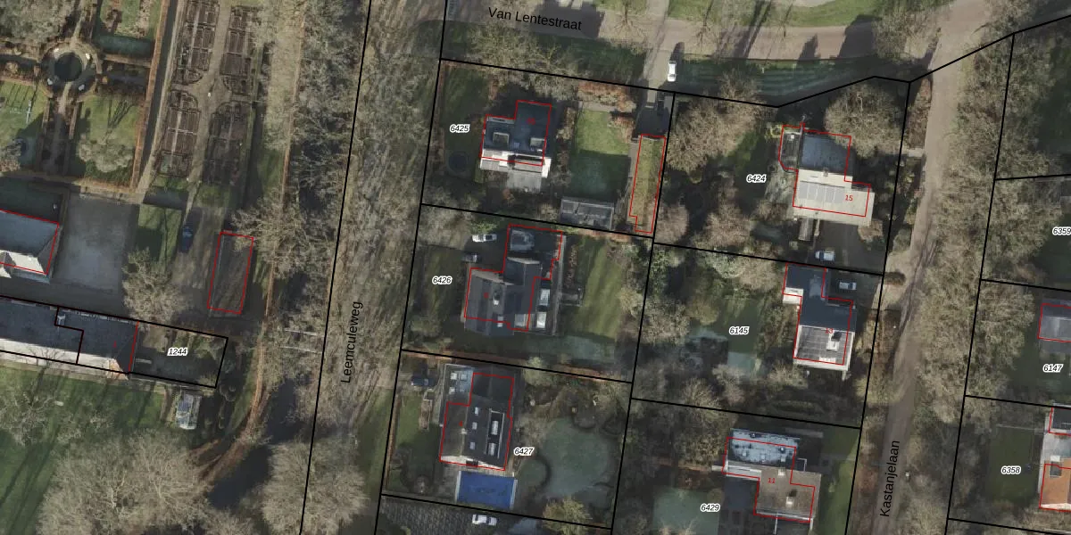 Het perceel waarop Leemculeweg 6 staat heeft een oppervlakte van 1217 m². Dit is een zeer groot perceel. De perceeloppervlakte wordt geregistreerd door het Kadaster. Gedetailleerde informatie over de maten van dit perceel kunt u vinden in het rapport Kadastrale kaart met maatvoering van Leemculeweg 6.