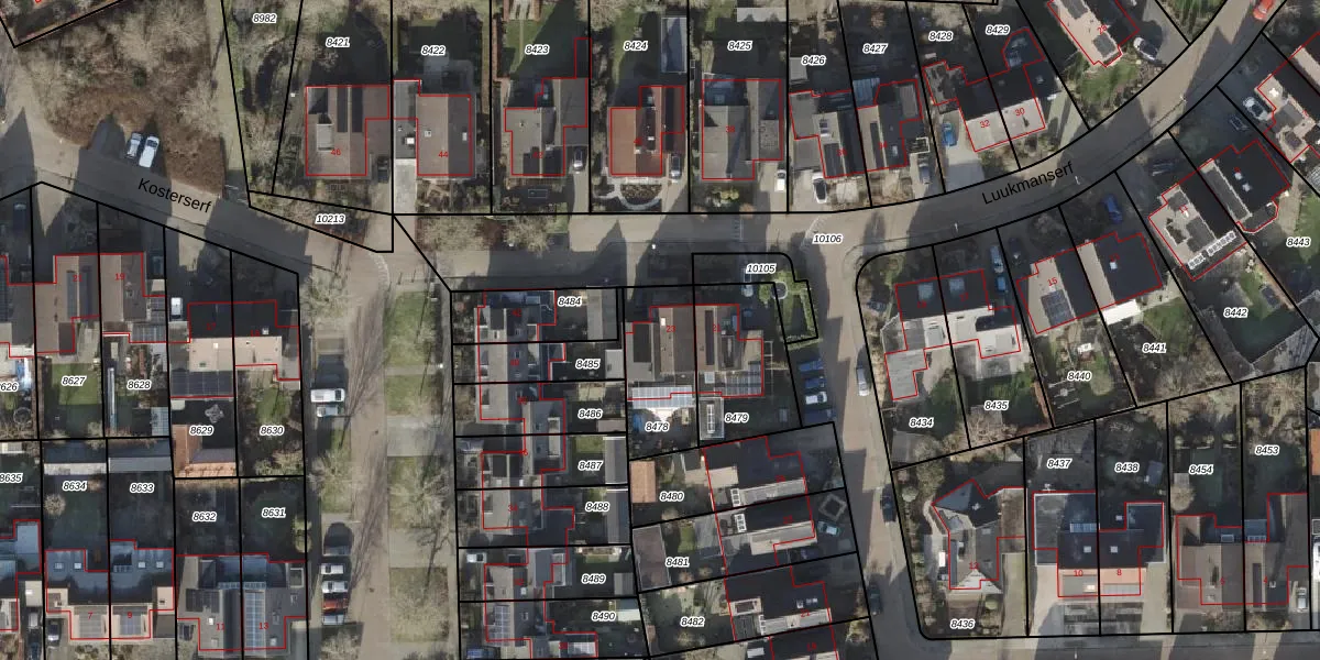 Gebruik de zoekbalk of klik op een perceel voor informatie over de adressen binnen dit perceel.