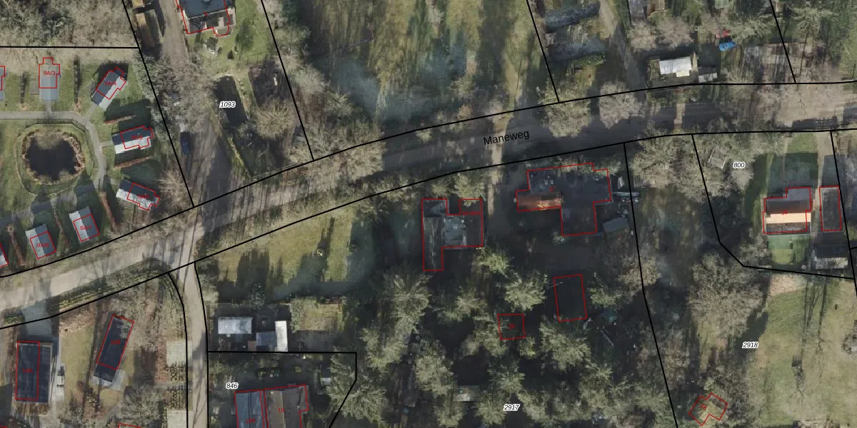 Het perceel waarop Maneweg 16-A staat heeft een oppervlakte van 1,1 ha. Dit is een zeer groot perceel. De perceeloppervlakte wordt geregistreerd door het Kadaster. Gedetailleerde informatie over de maten van dit perceel kunt u vinden in het rapport Kadastrale kaart met maatvoering van Maneweg 16-A.