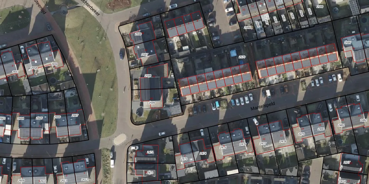 Het perceel waarop Mantelspeld 1 staat heeft een oppervlakte van 2939 m². Dit is een zeer groot perceel. De perceeloppervlakte wordt geregistreerd door het Kadaster. Gedetailleerde informatie over de maten van dit perceel kunt u vinden in het rapport Kadastrale kaart met maatvoering van Mantelspeld 1.