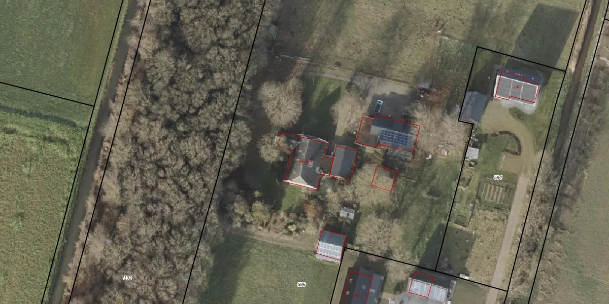 Het perceel waarop Marshoekersteeg 14-A staat heeft een oppervlakte van 2,0 ha. Dit is een zeer groot perceel. De perceeloppervlakte wordt geregistreerd door het Kadaster. Gedetailleerde informatie over de maten van dit perceel kunt u vinden in het rapport Kadastrale kaart met maatvoering van Marshoekersteeg 14-A.