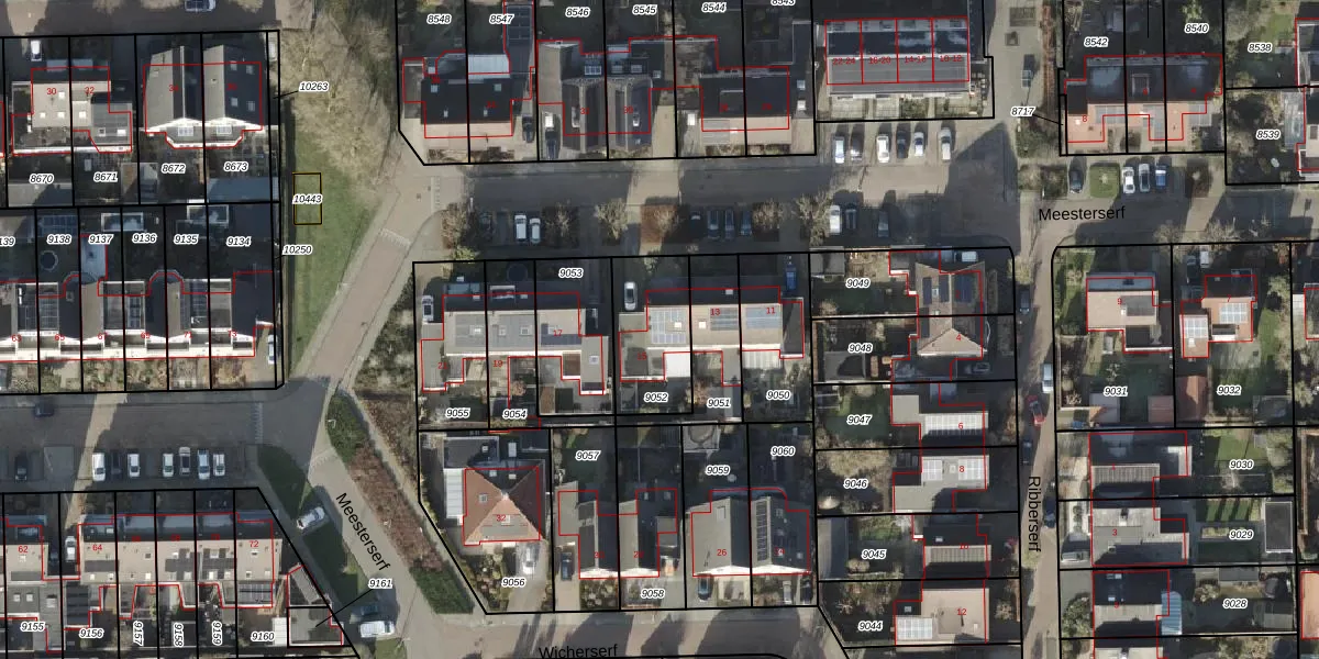 Het perceel waarop Meesterserf 15 staat heeft een oppervlakte van 280 m². Dit is een middelgroot perceel. De perceeloppervlakte wordt geregistreerd door het Kadaster. Gedetailleerde informatie over de maten van dit perceel kunt u vinden in het rapport Kadastrale kaart met maatvoering van Meesterserf 15.