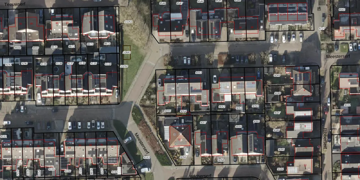 Het perceel waarop Meesterserf 19 staat heeft een oppervlakte van 213 m². Dit is een middelgroot perceel. De perceeloppervlakte wordt geregistreerd door het Kadaster. Gedetailleerde informatie over de maten van dit perceel kunt u vinden in het rapport Kadastrale kaart met maatvoering van Meesterserf 19.