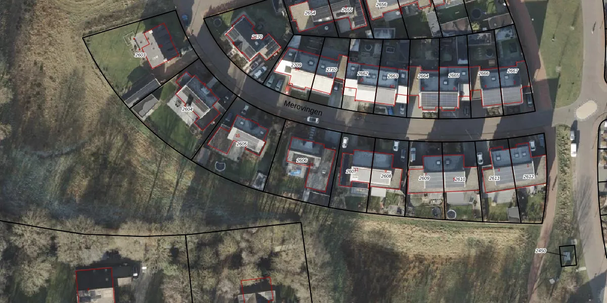 Het perceel waarop Merovingen 13 staat heeft een oppervlakte van 515 m². Dit is een groot perceel. De perceeloppervlakte wordt geregistreerd door het Kadaster. Gedetailleerde informatie over de maten van dit perceel kunt u vinden in het rapport Kadastrale kaart met maatvoering van Merovingen 13.