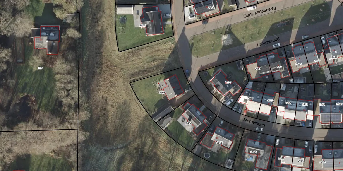 Het perceel waarop Merovingen 19 staat heeft een oppervlakte van 690 m². Dit is een groot perceel. De perceeloppervlakte wordt geregistreerd door het Kadaster. Gedetailleerde informatie over de maten van dit perceel kunt u vinden in het rapport Kadastrale kaart met maatvoering van Merovingen 19.