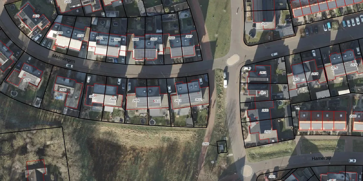 Het perceel waarop Merovingen 3 staat heeft een oppervlakte van 320 m². Dit is een groot perceel. De perceeloppervlakte wordt geregistreerd door het Kadaster. Gedetailleerde informatie over de maten van dit perceel kunt u vinden in het rapport Kadastrale kaart met maatvoering van Merovingen 3.