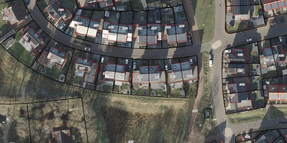 Het perceel waarop Merovingen 7 staat heeft een oppervlakte van 305 m². Dit is een groot perceel. De perceeloppervlakte wordt geregistreerd door het Kadaster. Gedetailleerde informatie over de maten van dit perceel kunt u vinden in het rapport Kadastrale kaart met maatvoering van Merovingen 7.