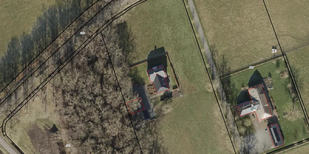 Het perceel waarop Middeldijk 25 staat heeft een oppervlakte van 8662 m². Dit is een zeer groot perceel. De perceeloppervlakte wordt geregistreerd door het Kadaster. Gedetailleerde informatie over de maten van dit perceel kunt u vinden in het rapport Kadastrale kaart met maatvoering van Middeldijk 25.