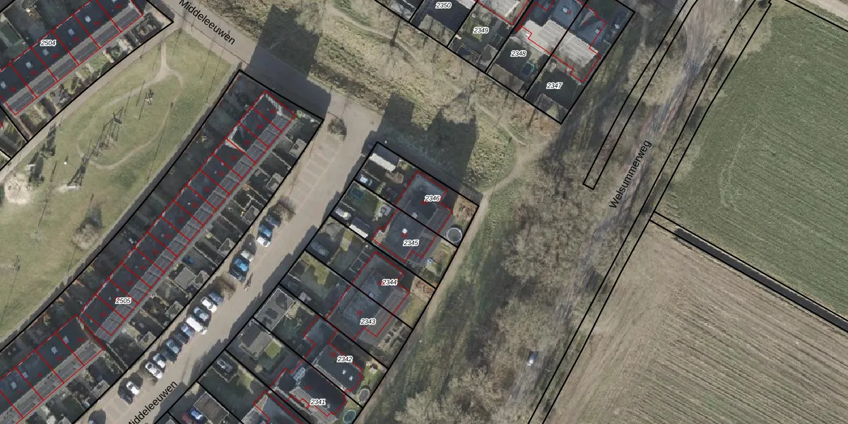 Middeleeuwen 24 is gelegen op kadastraal perceel DSN01Q2346. Deze kadastrale aanduiding is uniek en wordt gebruikt door het Kadaster om eigendomsrechten en andere zakelijke rechten vast te leggen. Het perceel maakt onderdeel uit van de kadastrale gemeente Dalfsen.
