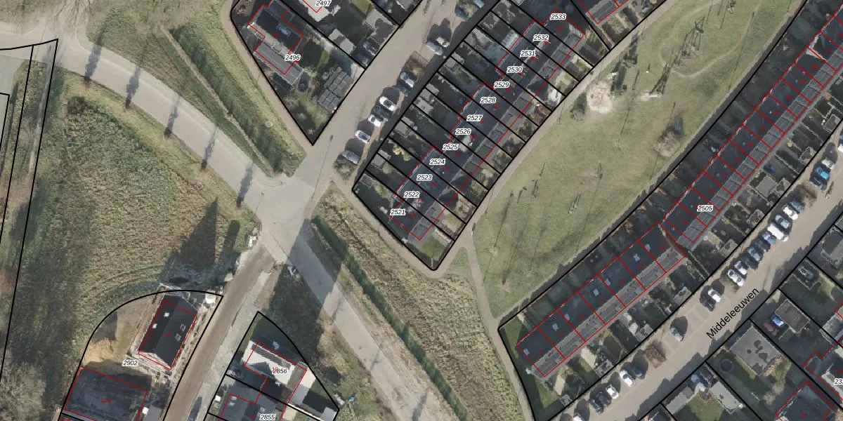 Middeleeuwen 77 is gelegen op kadastraal perceel DSN01Q2522. Deze kadastrale aanduiding is uniek en wordt gebruikt door het Kadaster om eigendomsrechten en andere zakelijke rechten vast te leggen. Het perceel maakt onderdeel uit van de kadastrale gemeente Dalfsen.