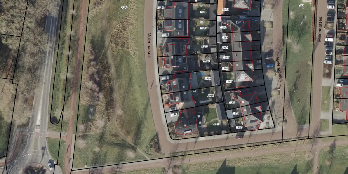 Het perceel waarop Molenaarses 21 staat heeft een oppervlakte van 349 m². Dit is een groot perceel. De perceeloppervlakte wordt geregistreerd door het Kadaster. Gedetailleerde informatie over de maten van dit perceel kunt u vinden in het rapport Kadastrale kaart met maatvoering van Molenaarses 21.