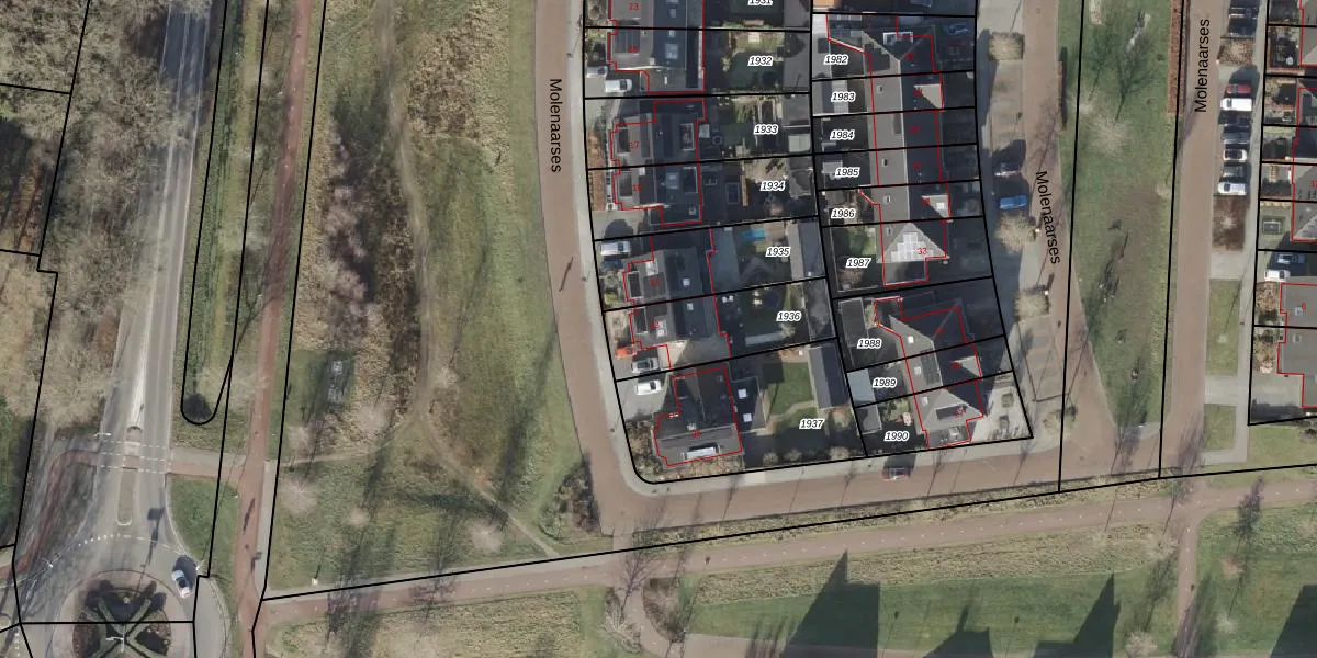 Het perceel waarop Molenaarses 23 staat heeft een oppervlakte van 349 m². Dit is een groot perceel. De perceeloppervlakte wordt geregistreerd door het Kadaster. Gedetailleerde informatie over de maten van dit perceel kunt u vinden in het rapport Kadastrale kaart met maatvoering van Molenaarses 23.