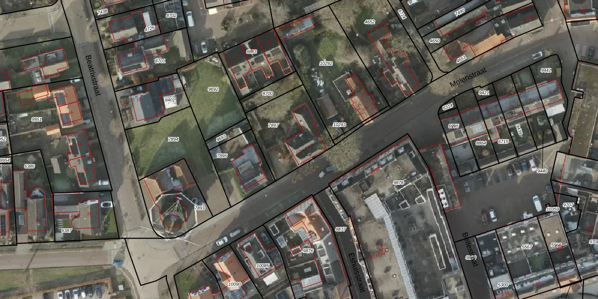 Het perceel waarop Molenstraat 12 staat heeft een oppervlakte van 545 m². Dit is een groot perceel. De perceeloppervlakte wordt geregistreerd door het Kadaster. Gedetailleerde informatie over de maten van dit perceel kunt u vinden in het rapport Kadastrale kaart met maatvoering van Molenstraat 12.