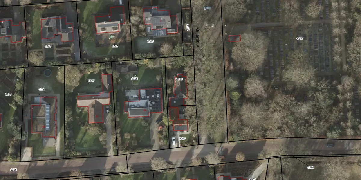 Het perceel waarop Mulertlaan 1 staat heeft een oppervlakte van 433 m². Dit is een groot perceel. De perceeloppervlakte wordt geregistreerd door het Kadaster. Gedetailleerde informatie over de maten van dit perceel kunt u vinden in het rapport Kadastrale kaart met maatvoering van Mulertlaan 1.