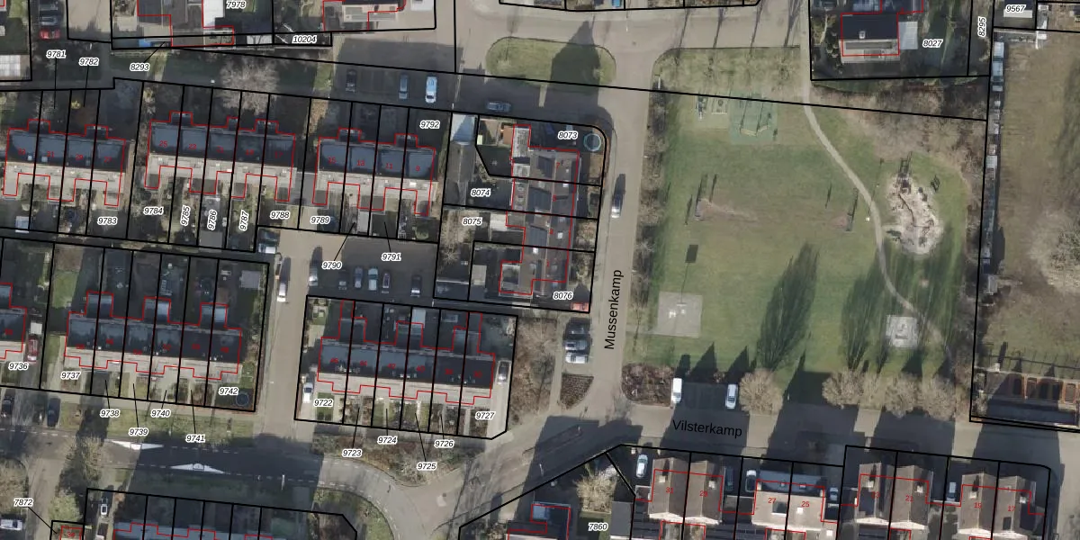 Het perceel waarop Mussenkamp 1 staat heeft een oppervlakte van 253 m². Dit is een middelgroot perceel. De perceeloppervlakte wordt geregistreerd door het Kadaster. Gedetailleerde informatie over de maten van dit perceel kunt u vinden in het rapport Kadastrale kaart met maatvoering van Mussenkamp 1.