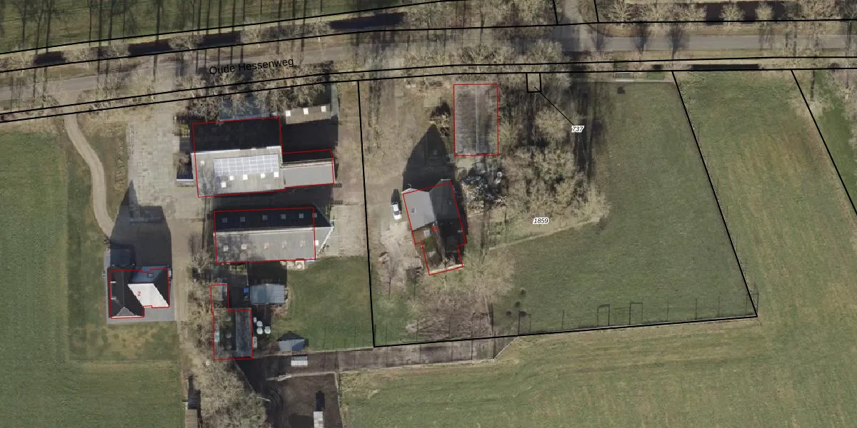 Het perceel waarop Oude Hessenweg 2-A staat heeft een oppervlakte van 4940 m². Dit is een zeer groot perceel. De perceeloppervlakte wordt geregistreerd door het Kadaster. Gedetailleerde informatie over de maten van dit perceel kunt u vinden in het rapport Kadastrale kaart met maatvoering van Oude Hessenweg 2-A.