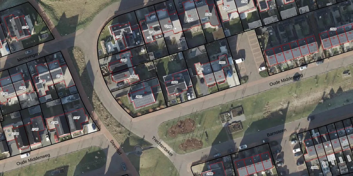 Gebruik de zoekbalk of klik op een perceel voor informatie over de adressen binnen dit perceel.