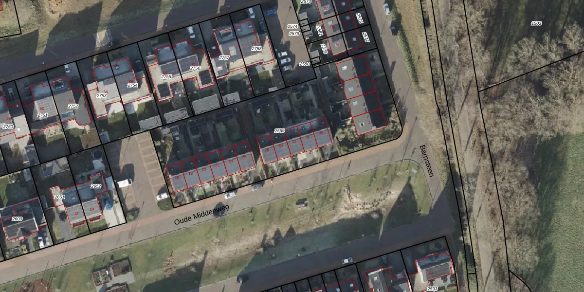 Oude Middenweg 32 is gelegen op kadastraal perceel DSN01Q2569. Deze kadastrale aanduiding is uniek en wordt gebruikt door het Kadaster om eigendomsrechten en andere zakelijke rechten vast te leggen. Het perceel maakt onderdeel uit van de kadastrale gemeente Dalfsen.