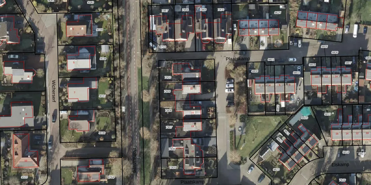 Het perceel waarop Plaatskamp 17 staat heeft een oppervlakte van 300 m². Dit is een groot perceel. De perceeloppervlakte wordt geregistreerd door het Kadaster. Gedetailleerde informatie over de maten van dit perceel kunt u vinden in het rapport Kadastrale kaart met maatvoering van Plaatskamp 17.