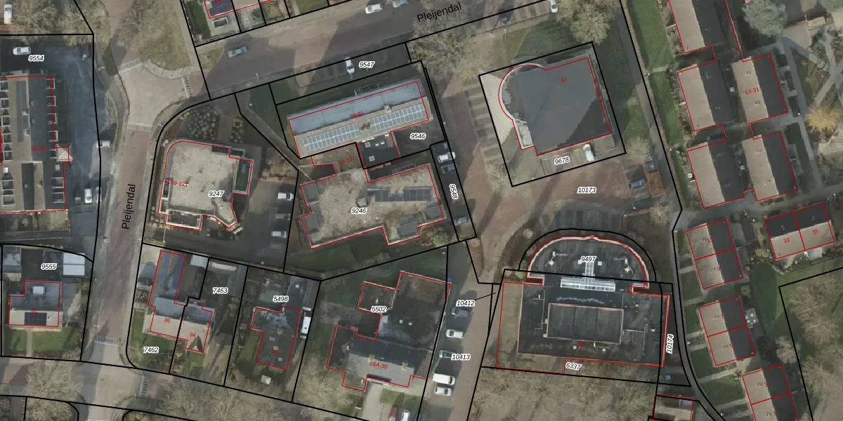 Het perceel waarop Pleijendal 95 staat heeft een oppervlakte van 1078 m². Dit is een zeer groot perceel. De perceeloppervlakte wordt geregistreerd door het Kadaster. Gedetailleerde informatie over de maten van dit perceel kunt u vinden in het rapport Kadastrale kaart met maatvoering van Pleijendal 95.