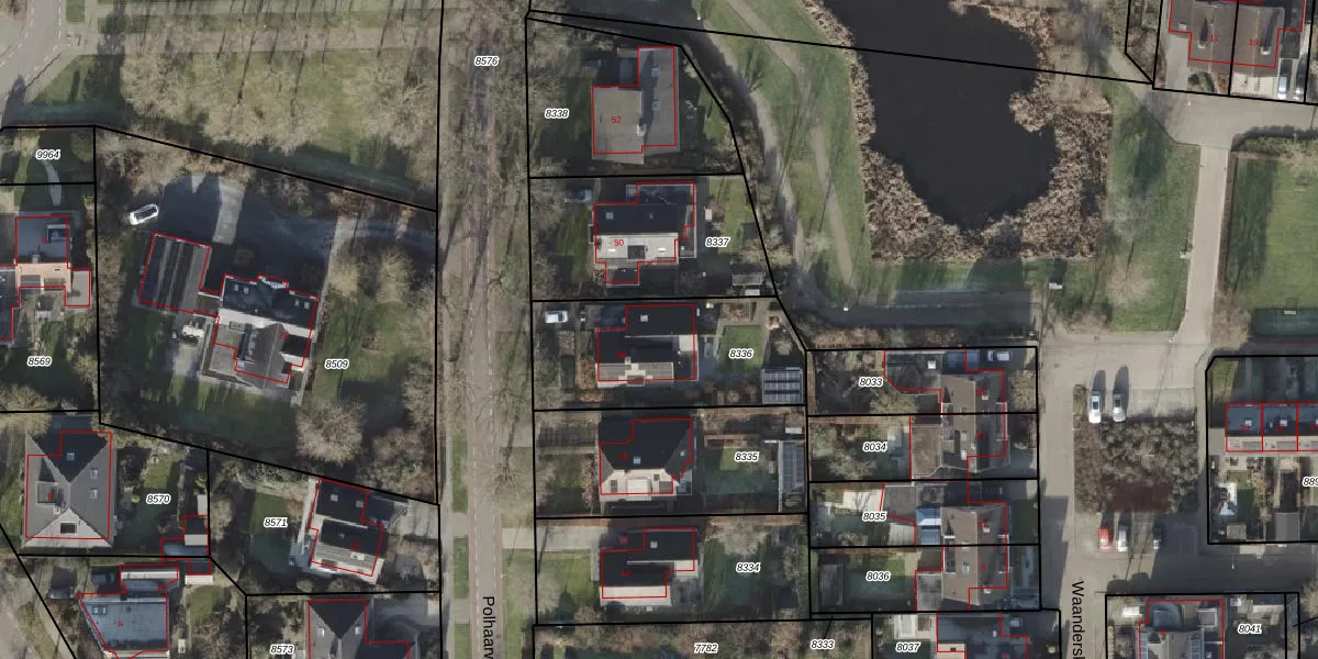 Gebruik de zoekbalk of klik op een perceel voor informatie over de adressen binnen dit perceel.