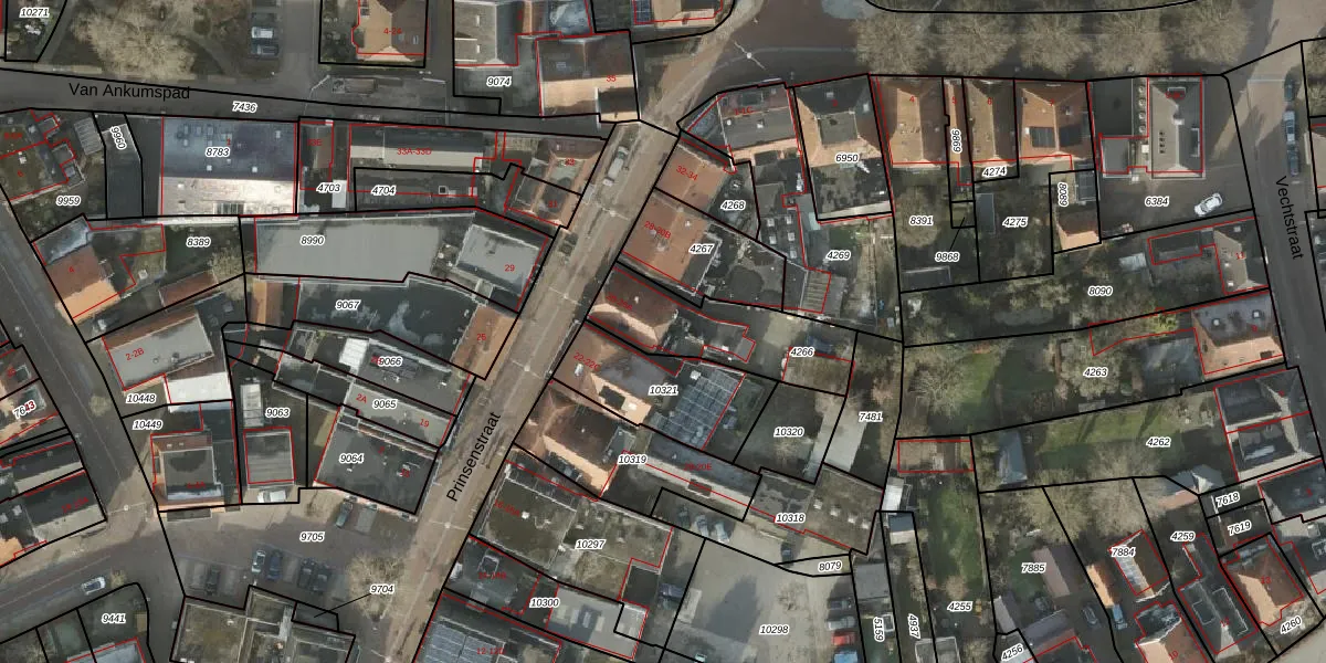Het perceel waarop Prinsenstraat 26-A staat heeft een oppervlakte van 396 m². Dit is een groot perceel. De perceeloppervlakte wordt geregistreerd door het Kadaster. Gedetailleerde informatie over de maten van dit perceel kunt u vinden in het rapport Kadastrale kaart met maatvoering van Prinsenstraat 26-A.