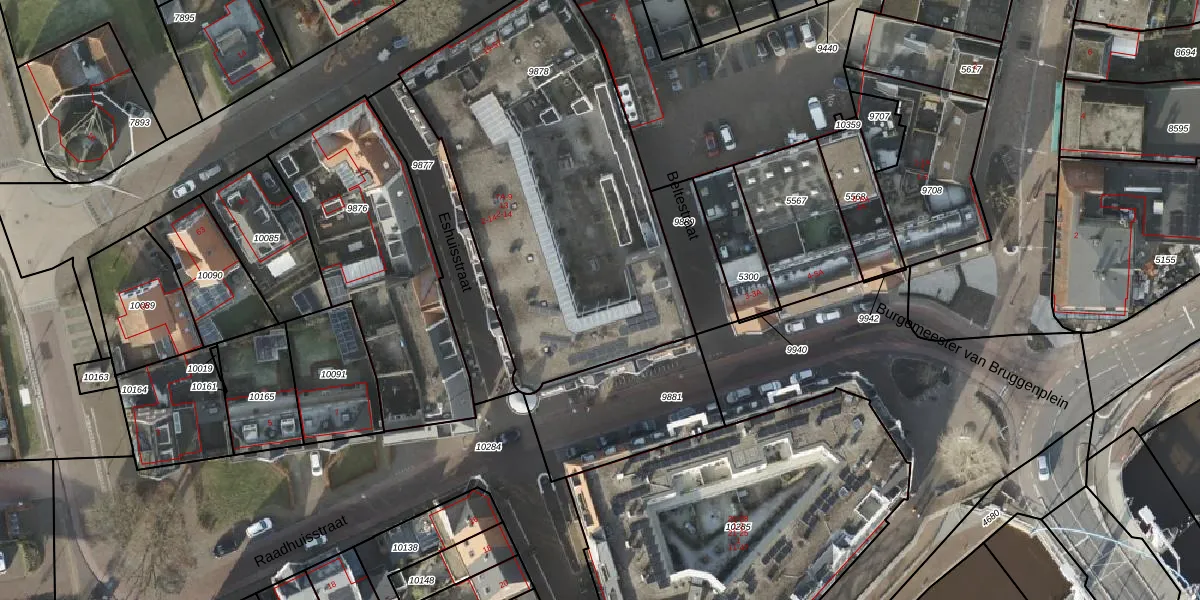 Het perceel waarop Raadhuisstraat 13 staat heeft een oppervlakte van 1869 m². Dit is een zeer groot perceel. De perceeloppervlakte wordt geregistreerd door het Kadaster. Gedetailleerde informatie over de maten van dit perceel kunt u vinden in het rapport Kadastrale kaart met maatvoering van Raadhuisstraat 13.