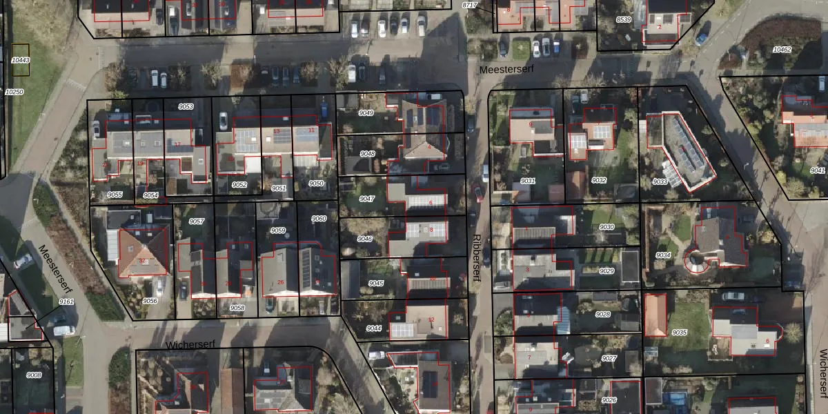 Gebruik de zoekbalk of klik op een perceel voor informatie over de adressen binnen dit perceel.