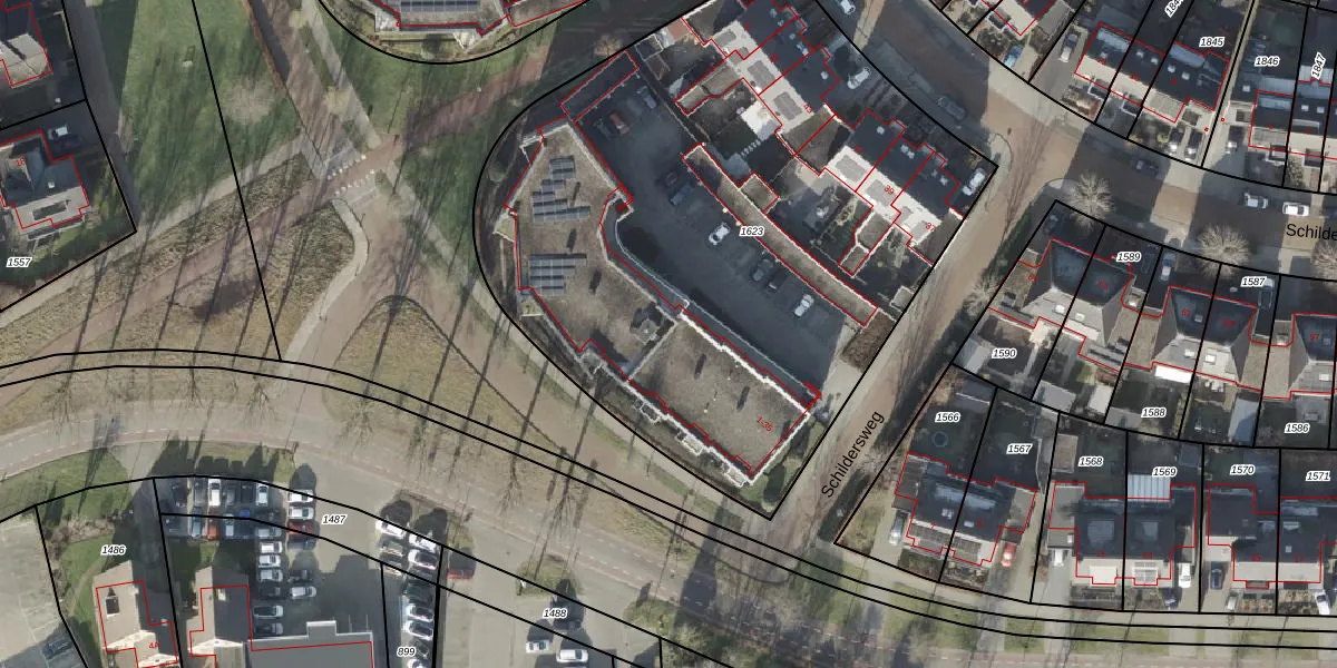 Schildersweg 13 is gelegen op kadastraal perceel DSN01Q1623. Deze kadastrale aanduiding is uniek en wordt gebruikt door het Kadaster om eigendomsrechten en andere zakelijke rechten vast te leggen. Het perceel maakt onderdeel uit van de kadastrale gemeente Dalfsen.