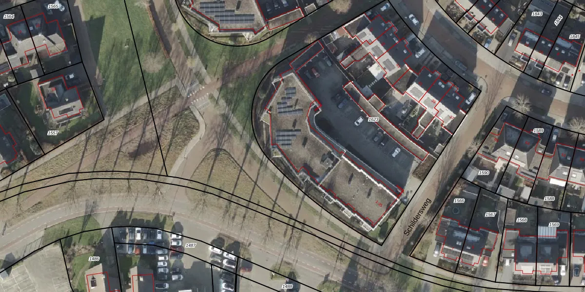 Het perceel waarop Schildersweg 23 staat heeft een oppervlakte van 3789 m². Dit is een zeer groot perceel. De perceeloppervlakte wordt geregistreerd door het Kadaster. Gedetailleerde informatie over de maten van dit perceel kunt u vinden in het rapport Kadastrale kaart met maatvoering van Schildersweg 23.