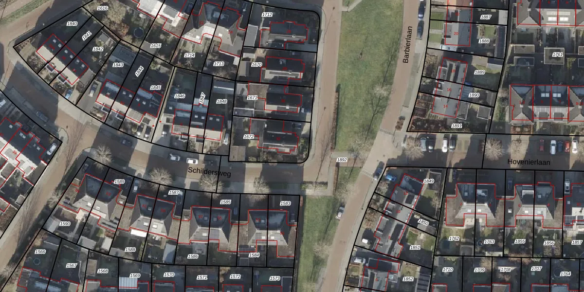 Gebruik de zoekbalk of klik op een perceel voor informatie over de adressen binnen dit perceel.