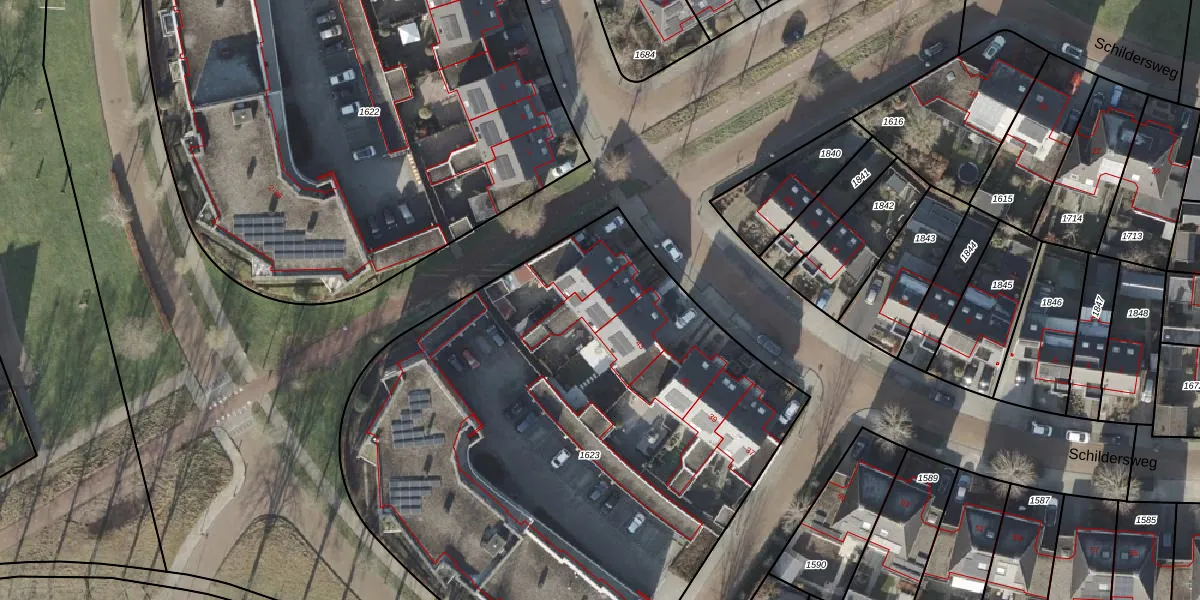 Het perceel waarop Schildersweg 45 staat heeft een oppervlakte van 3789 m². Dit is een zeer groot perceel. De perceeloppervlakte wordt geregistreerd door het Kadaster. Gedetailleerde informatie over de maten van dit perceel kunt u vinden in het rapport Kadastrale kaart met maatvoering van Schildersweg 45.