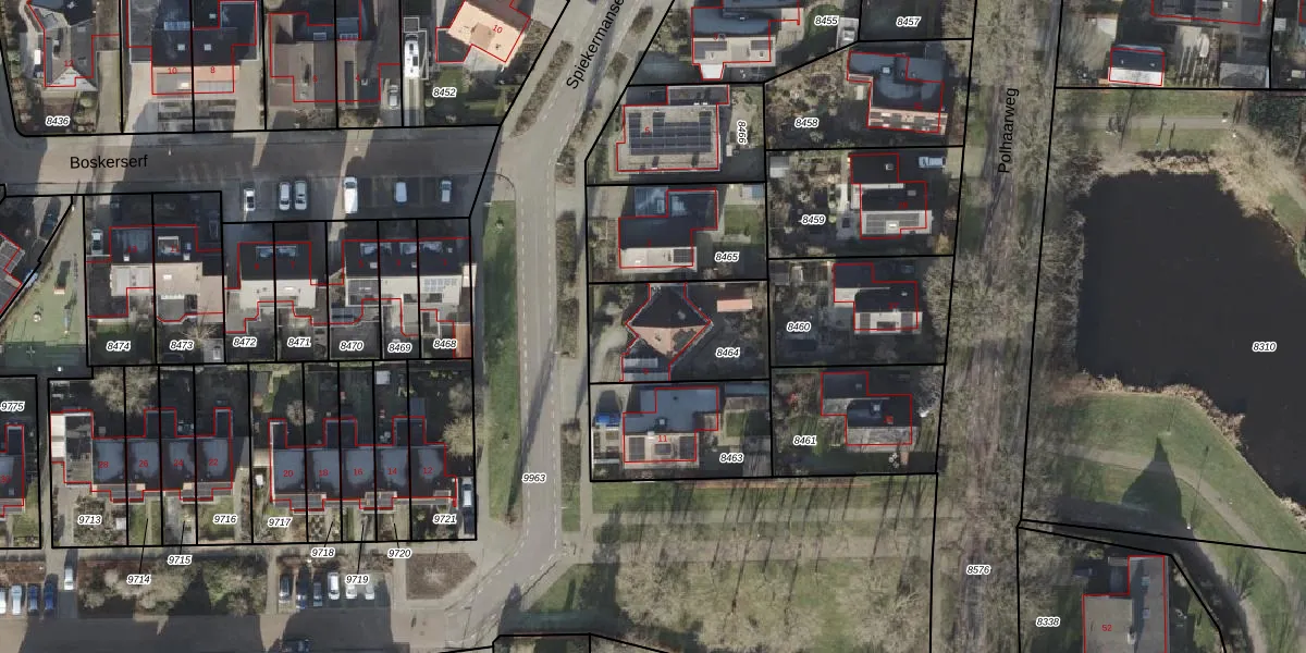 Spiekermanserf 9 is gelegen op kadastraal perceel DSN01K8464. Deze kadastrale aanduiding is uniek en wordt gebruikt door het Kadaster om eigendomsrechten en andere zakelijke rechten vast te leggen. Het perceel maakt onderdeel uit van de kadastrale gemeente Dalfsen.