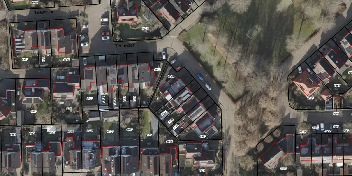 Teeuwserf 37 is gelegen op kadastraal perceel DSN01K8601. Deze kadastrale aanduiding is uniek en wordt gebruikt door het Kadaster om eigendomsrechten en andere zakelijke rechten vast te leggen. Het perceel maakt onderdeel uit van de kadastrale gemeente Dalfsen.