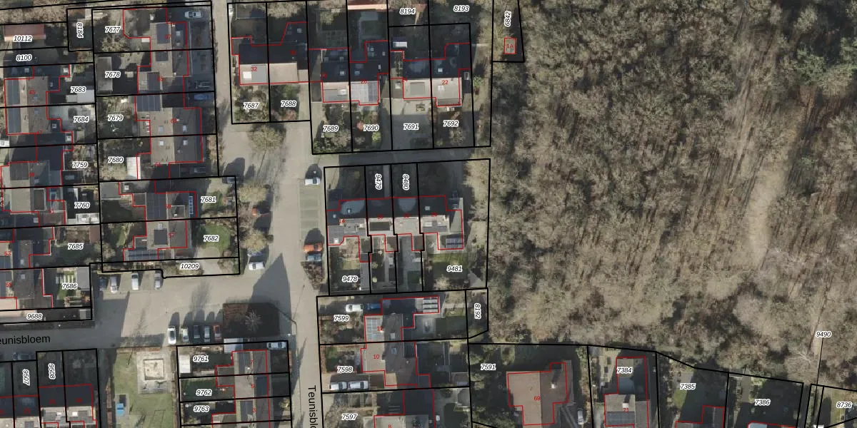 Het perceel waarop Teunisbloem 20 staat heeft een oppervlakte van 478 m². Dit is een groot perceel. De perceeloppervlakte wordt geregistreerd door het Kadaster. Gedetailleerde informatie over de maten van dit perceel kunt u vinden in het rapport Kadastrale kaart met maatvoering van Teunisbloem 20.